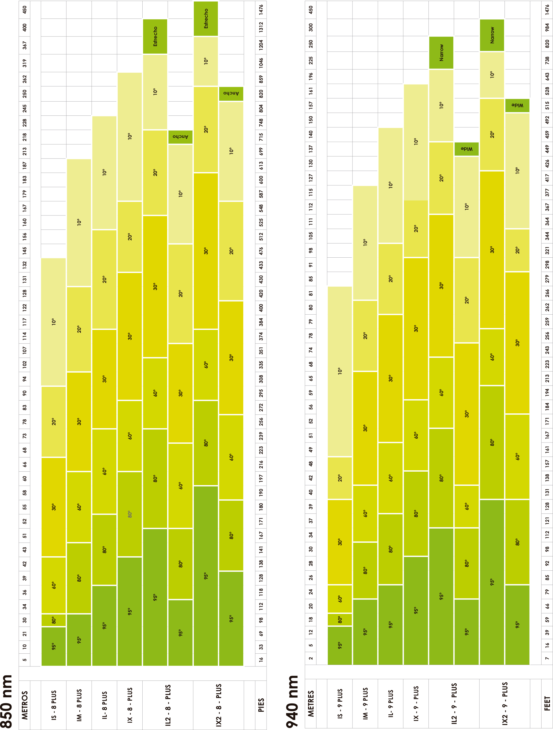 • Ángulo: 30º - Ellíptica | Distancia: De 65m a 213' | Campo de visión: De 35m a 114’